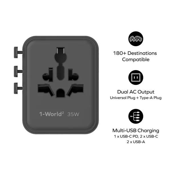 Momax 1-World2 35W 5-Port Dual AC Travel Adaptor Black Revolutionary Charging Solution for Global Travelers1-World² 35W 5-Port Travel Adaptor – your ultimate companion for hassle-free charging anywhere in the world. Whether you’re a frequent flyer or occasional traveler....