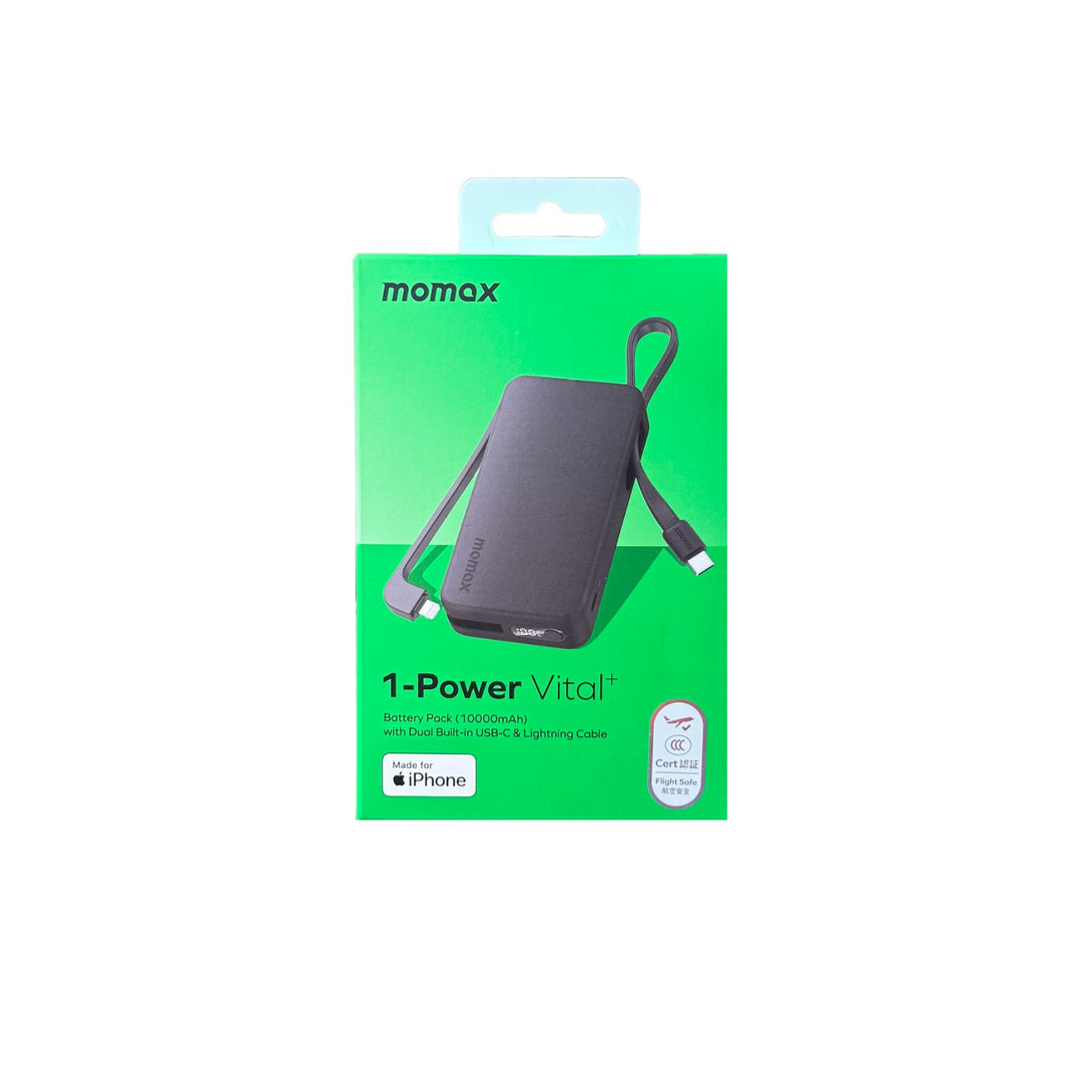 Momax 1-Power Vital Power Bank 10000mAh With Built In USB-C & Lightning Cable - Black The 1-Power Vital+ features a 30W Power Delivery (PD) quick charge technology that allows for high...